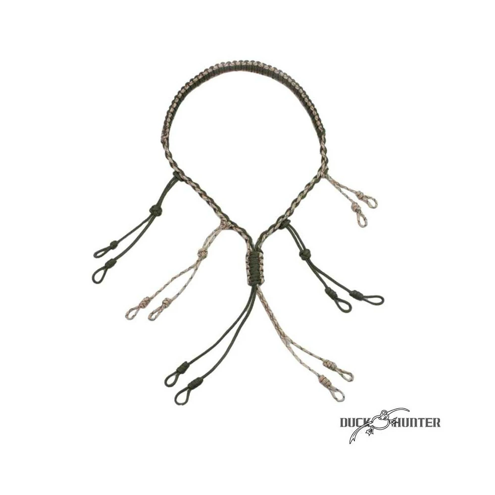Pour être prêt en toutes circonstances, le collier porte-appeaux Duck Hunter vous permettra de garder à portée de mains vos appeaux. Il est réalisé en para-corde tressée beige et kaki. Resistant et confortable, ses 12 boucles vous permettront de conserver autour du cou autant d’appeaux.