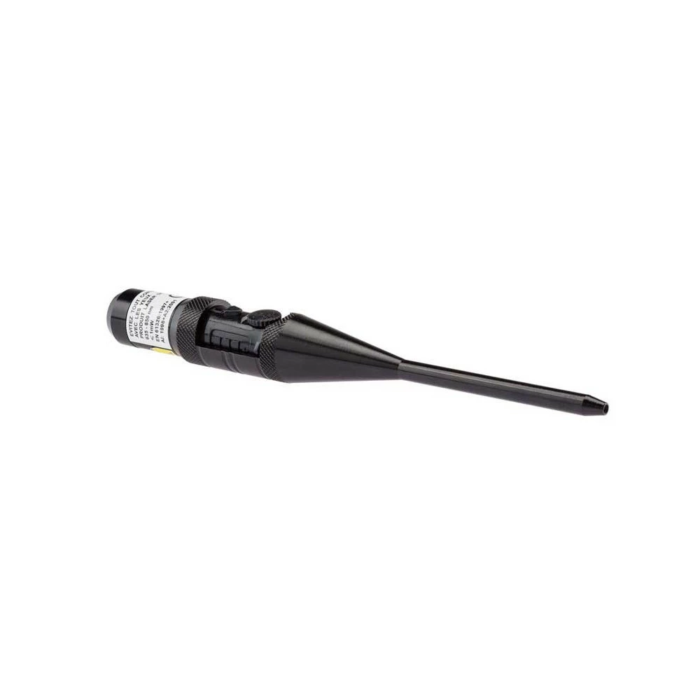 Le laser de collimatage de place à l’avant du canon de l’arme et indique précisément l’axe de tir grâce à une série d’adaptateurs pour différents calibres. En visant une surface claire, l’utilisateur n’a plus qu’à faire coïncider le réticule de la lunette avec le point laser projeté pour simbleauter sa lunette. Le réglage optimal se ferra à environ 20 mètres et à l’abri du soleil. Le réglage sera ensuite confirmé par des tirs réels. L’appareil est livré avec 7 adaptateurs pour calibres : . 22 / . 25 (6. 35mm) / . 30 (7. 62mm) / . 357 à . 40 (9 à 10mm) / . 50 (12,7mm) / cal 20 / cal 12. Livré avec 3 piles LR44 & 1 clef 6 pans.