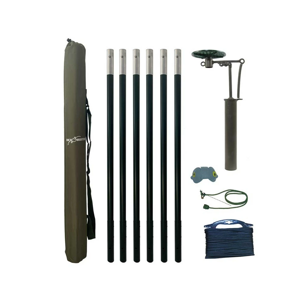 Pack complet pour installer un appelant vivant pigeon sur le mat Duck Hunter. Conçu en acier de 30 mm de diamètre, le mat vous permet d’installer vos appelants pigeon dans les arbres. Il est constitué de 6 éléments à emmanchement pour une longueur totale de 5,26 mètres. Le mat est livré avec son sac de transport. Le glaneur permettra d’installer un appelant vivant sur le mat en toute simplicité. Le pack complet est constitué de : 1 mat (5,26m), 1 glaneur, 1 casque, 1 entrave et 1 corde spéciale mécanisme de 50m.