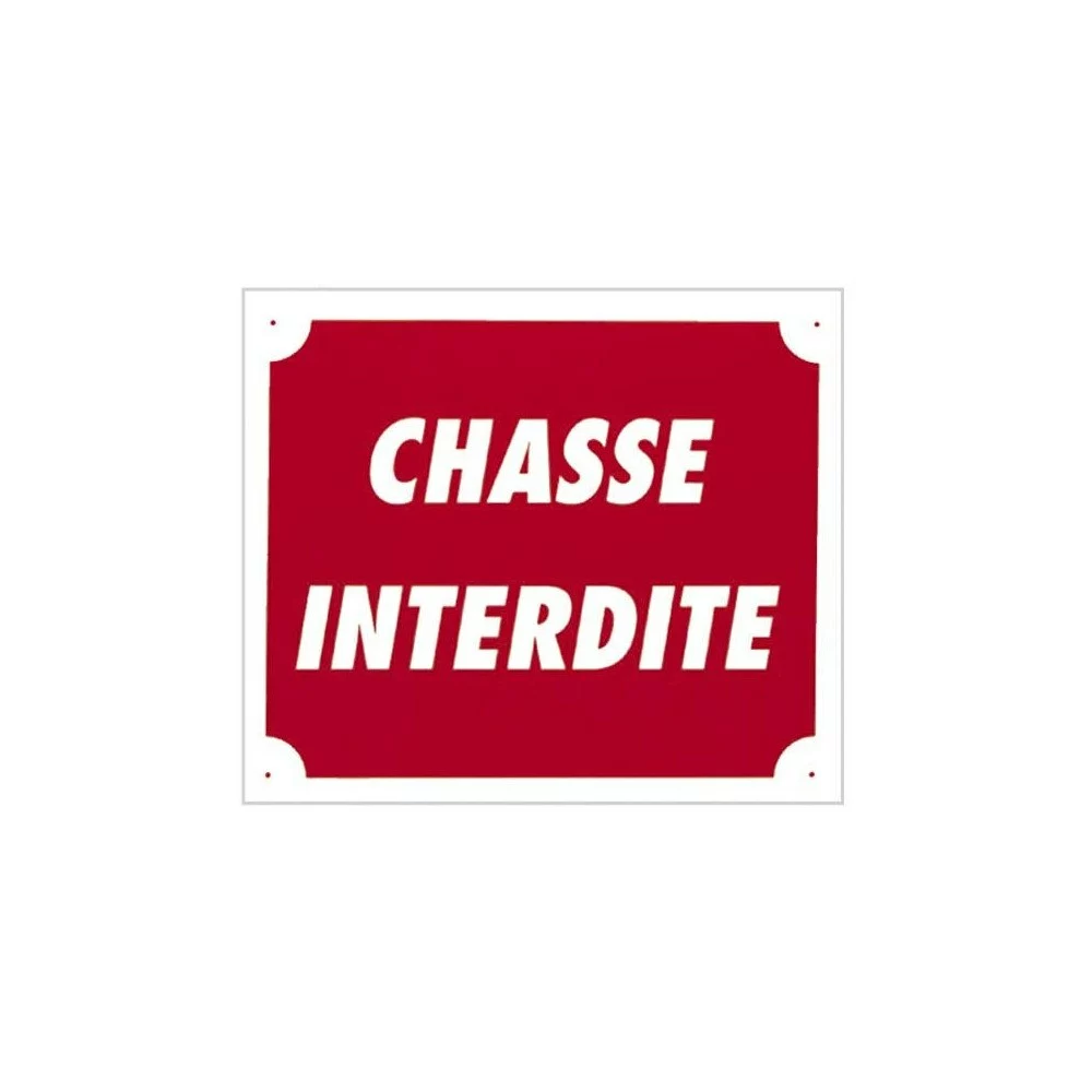 Pancarte fabriquée à partir d’Akilux, matière synthétique, légère, rigide et résistante. Dimensions : 30 x 25 cm. Intitulé du panneau : « Chasse Interdite »